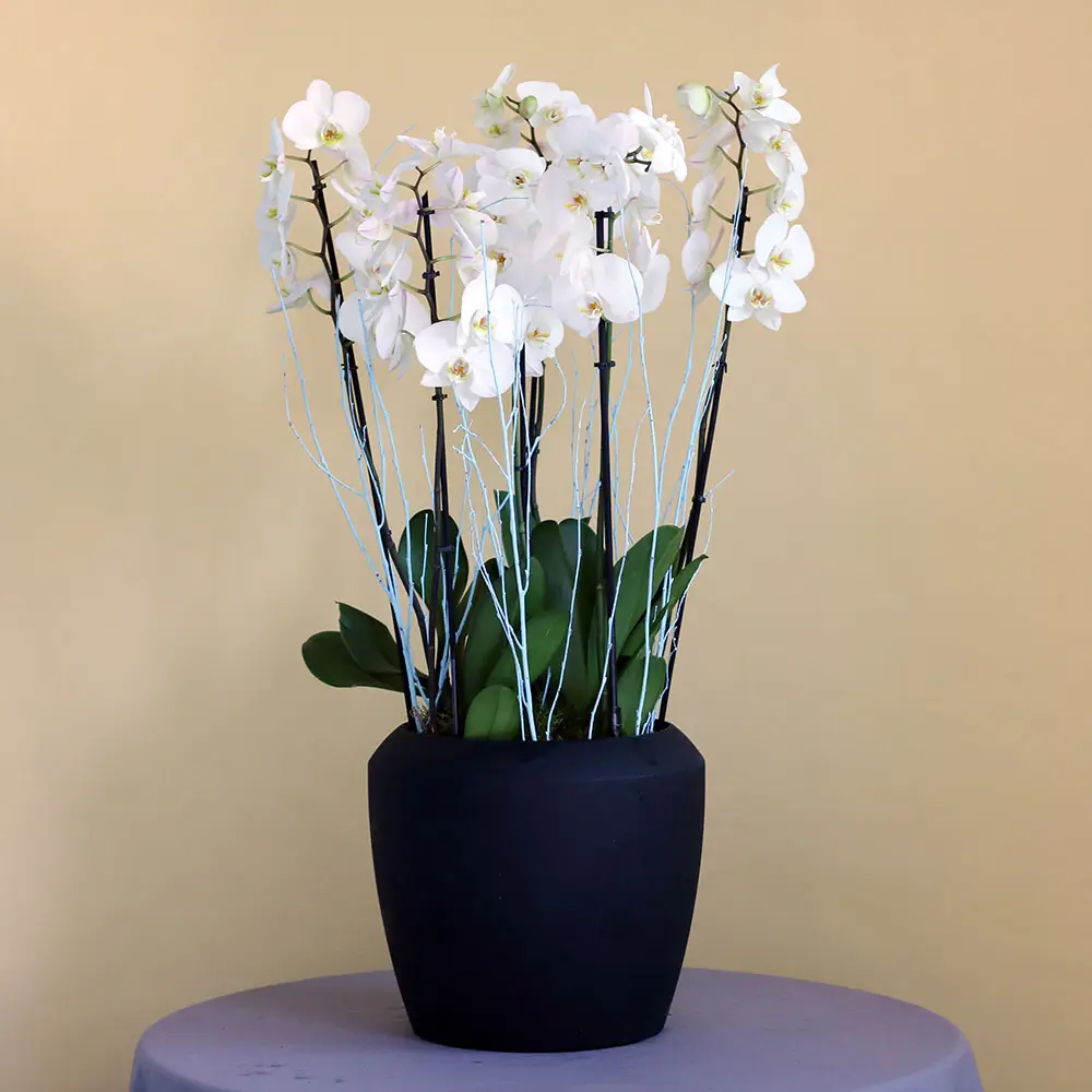 أوركيد بيضاء مذهلة في مزهريات فاخرة
