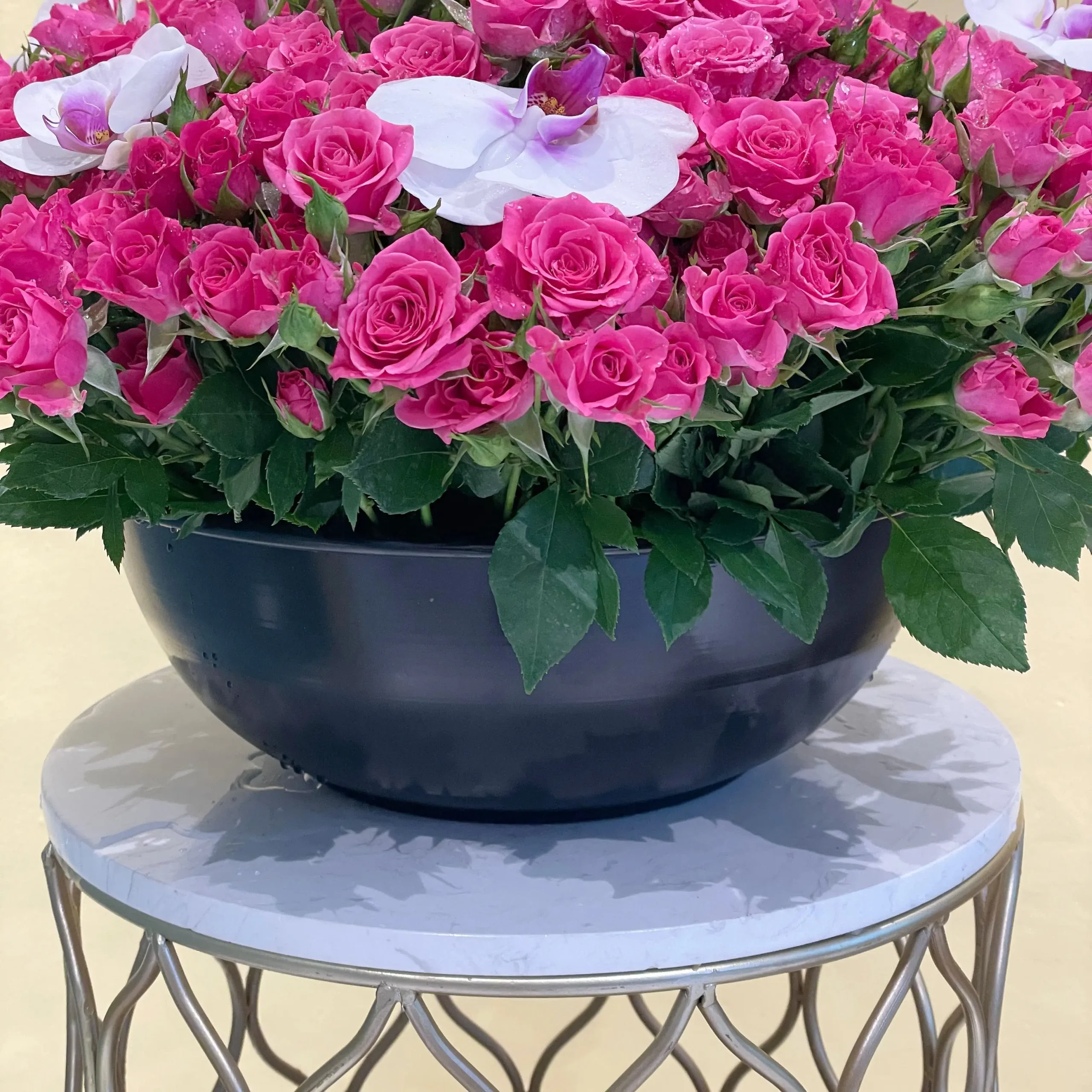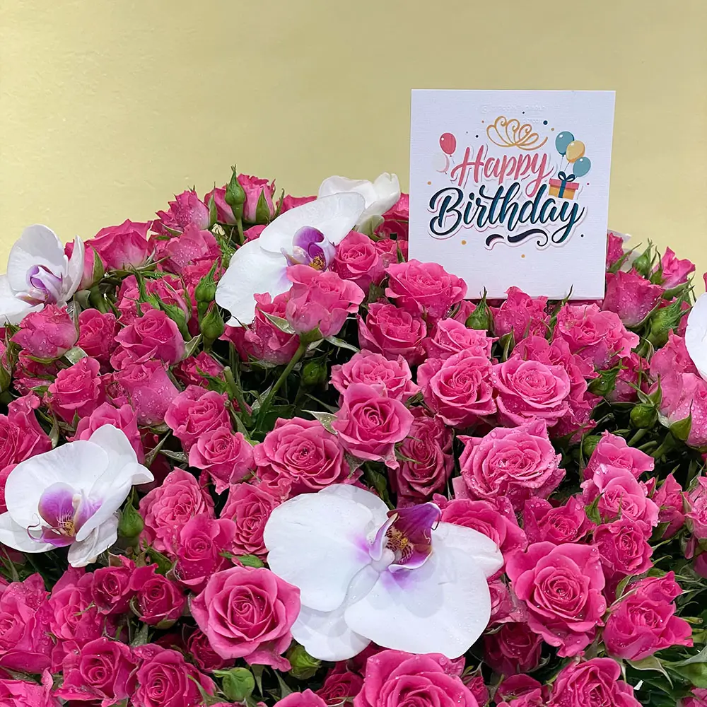 Beautiful Pink baby rose & touch orchid in a nice vase.