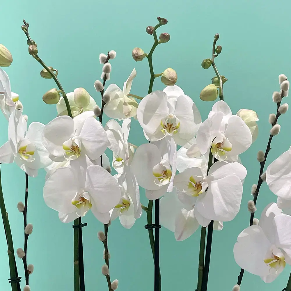 أوركيد بيضاء مذهلة في مزهريات فاخرة