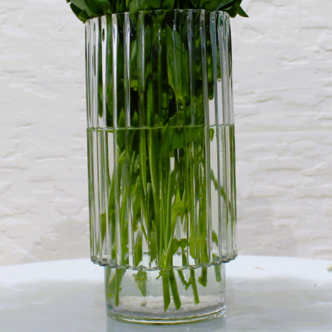 استوما بيضاء جميلة في مزهرية زجاجية.