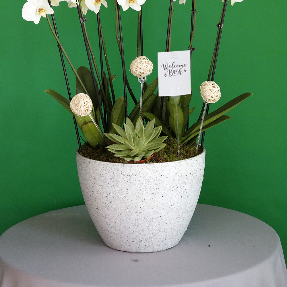 أوركيد بيضاء مذهلة في مزهريات فاخرة