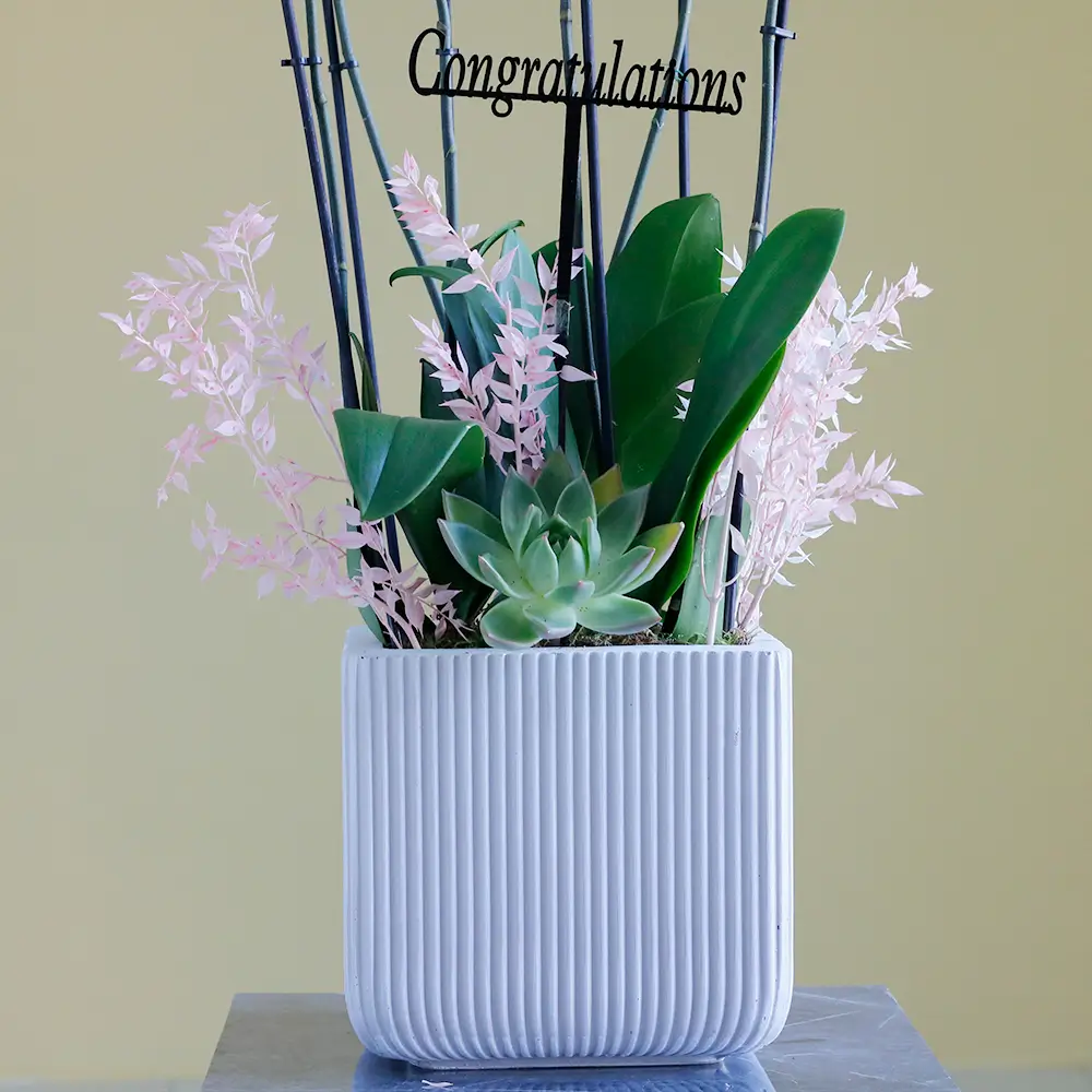 شفاه أوركيد في مزهرية فاخرة باللون الأحمر المذهل