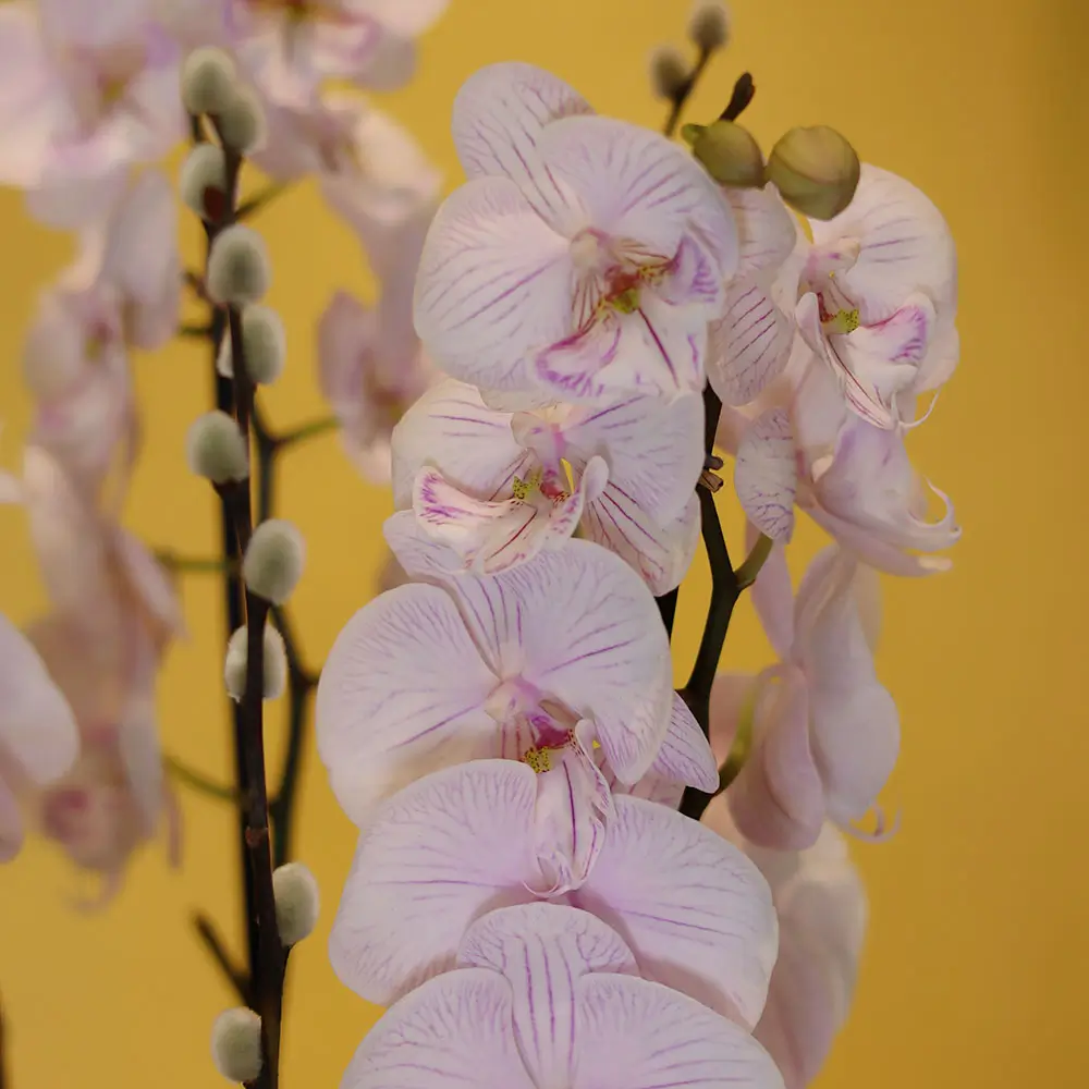 زهرة أوركيد بيضاء مذهلة في مزهرية فاخرة