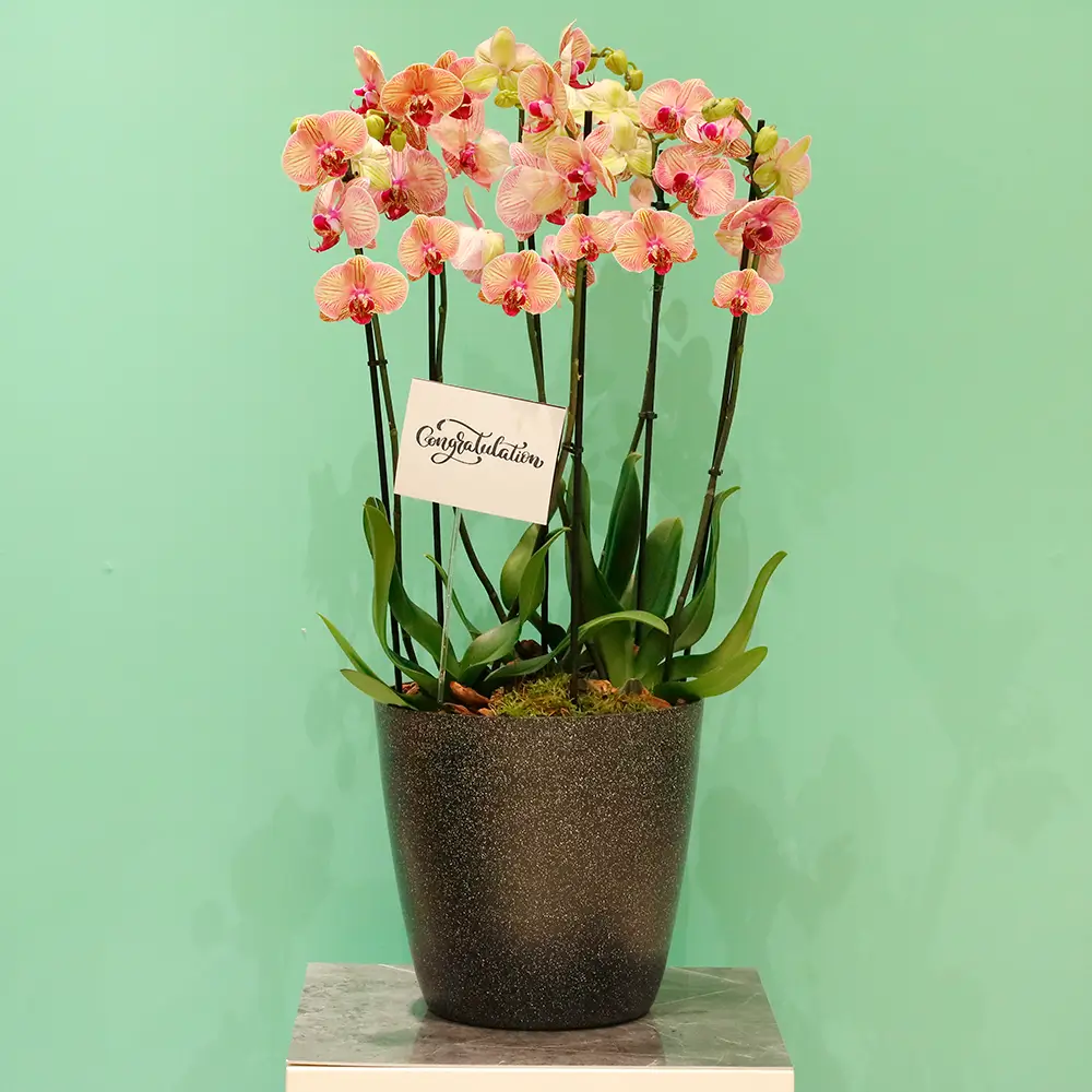 أوركيد الخوخ المذهل في مزهريات فاخرة