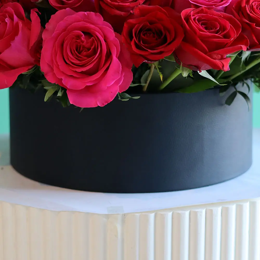 Beautiful Arrange Red & Pink Roses with Birds a Black Vases