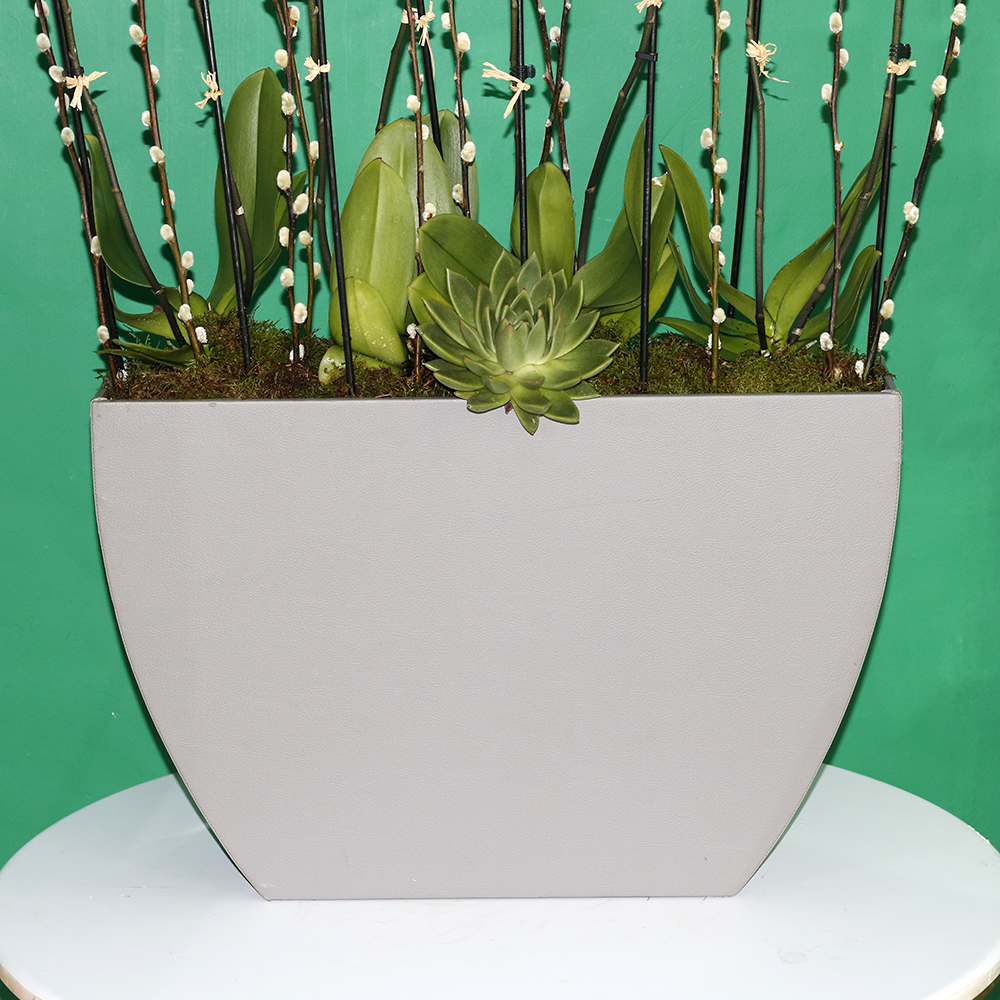 | زهور الأوركيد ذات الشفاه الحمراء المذهلة مرتبة مع البيضاوي الرمادي |