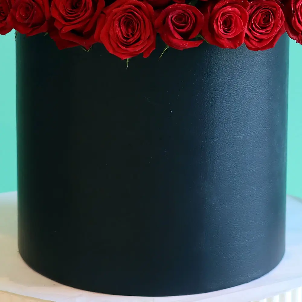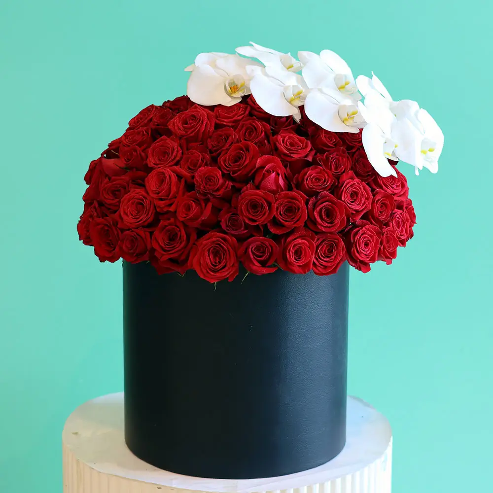 Beautiful Arrange Red Roses & Orchids in a black Vases