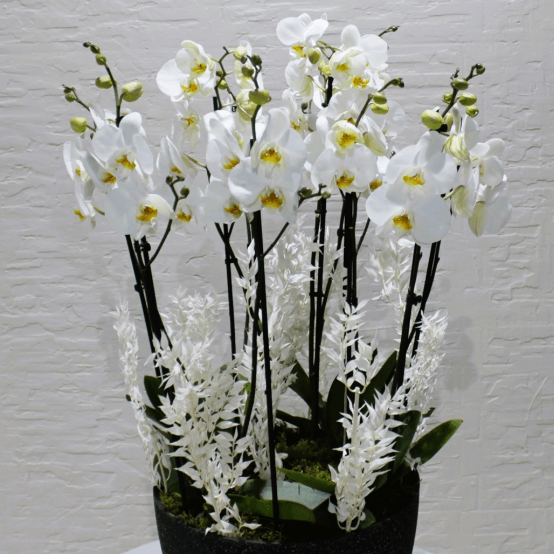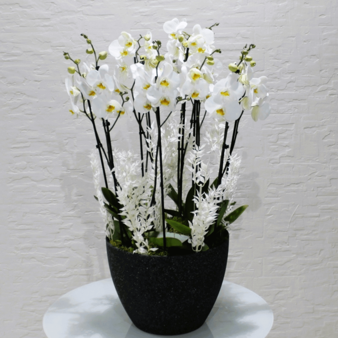بساتين الفاكهة الوحي مذهلة مرتبة في مزهرية سوداء.