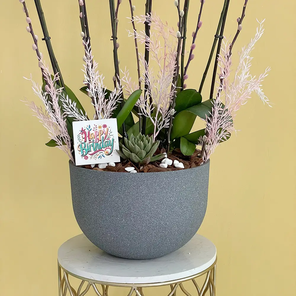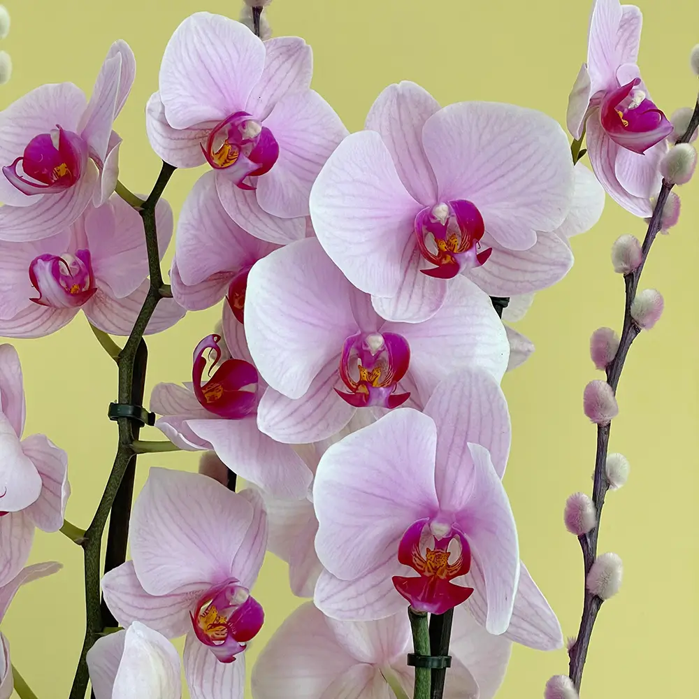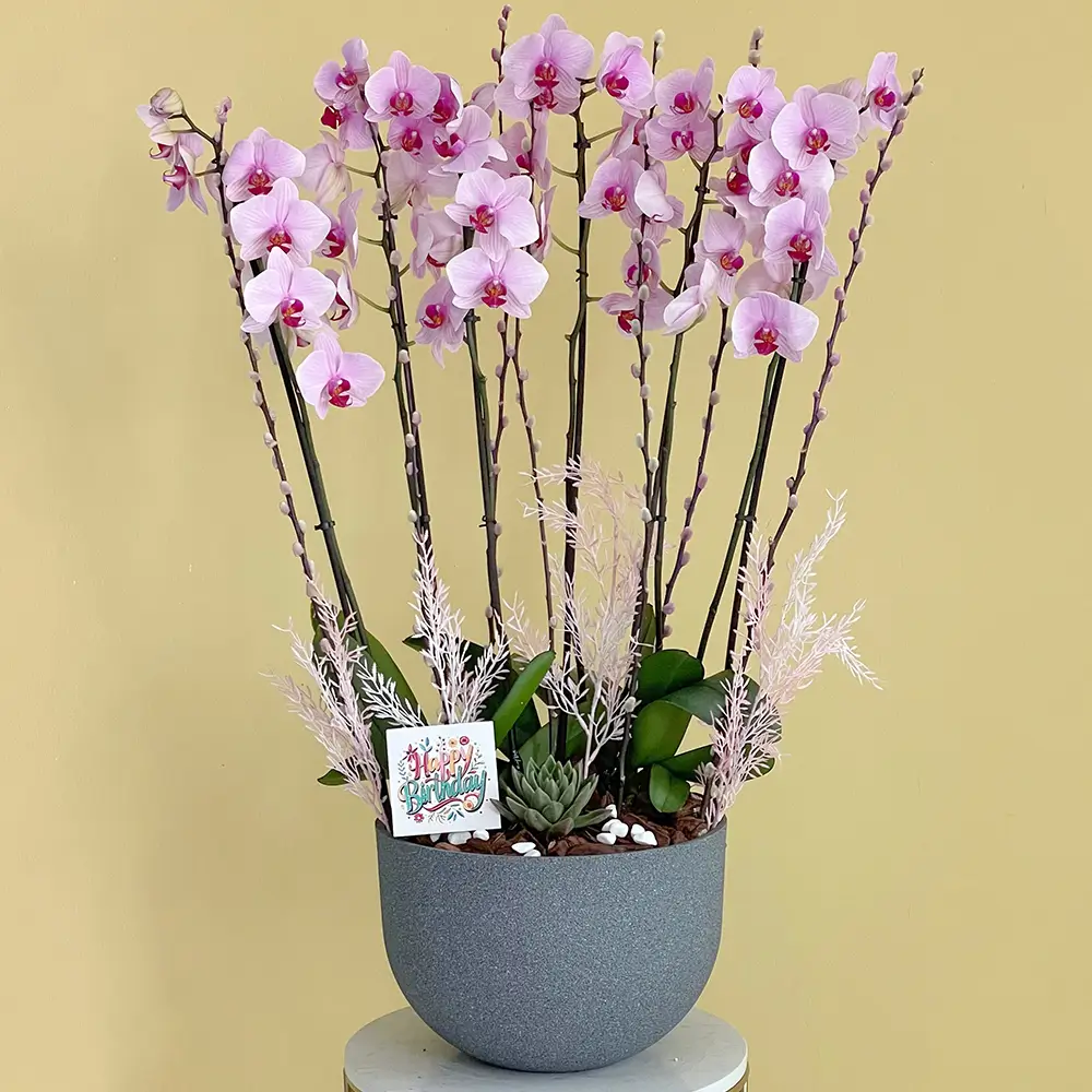 زهرة الأوركيد الوردية المذهلة في مزهريات فاخرة