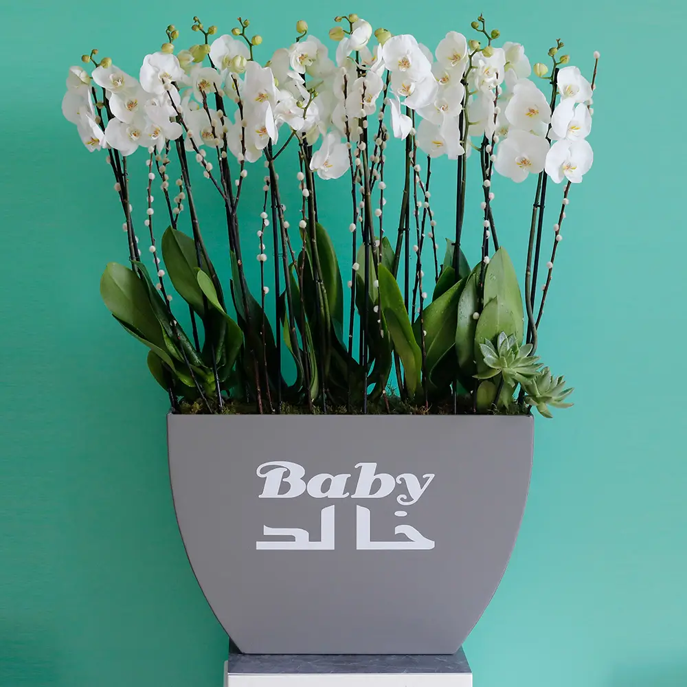 أوركيد بيضاء مذهلة في مزهرية ممتازة