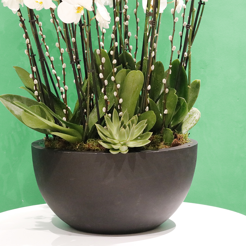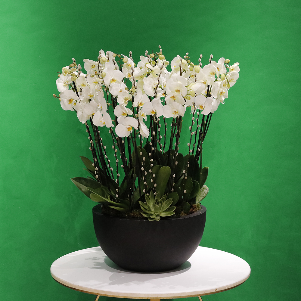 أوركيد أبيض مذهل في مزهريات فاخرة