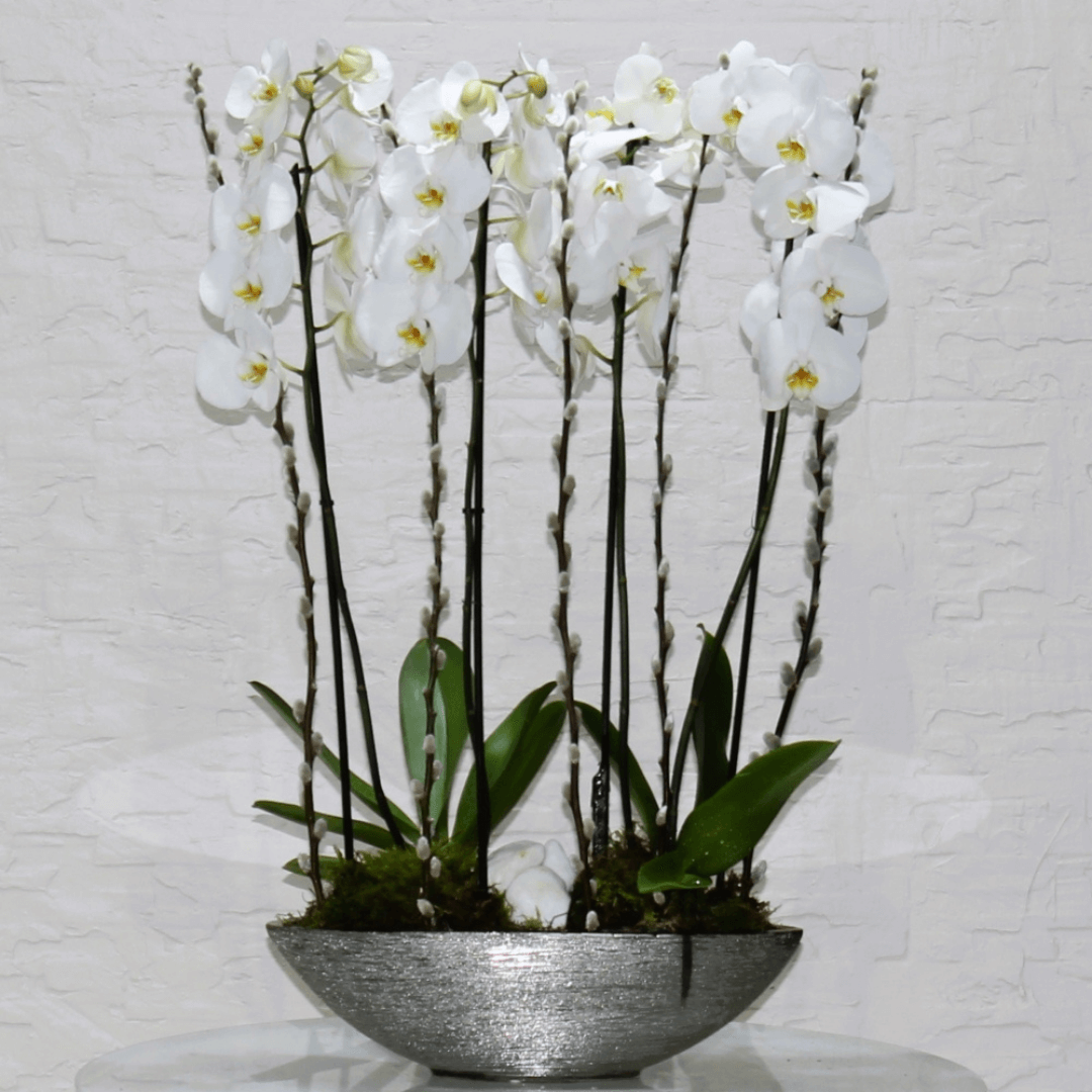 بساتين الفاكهة البيضاء المذهلة في مزهرية من السيراميك.