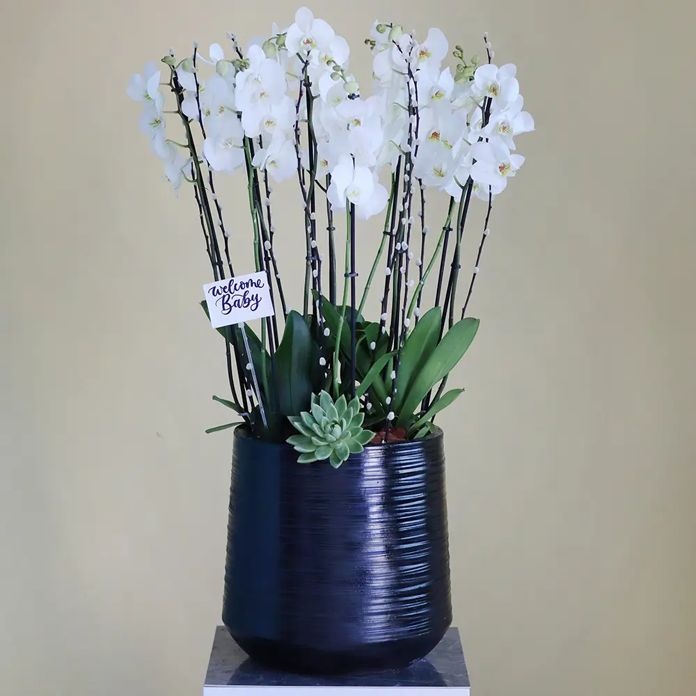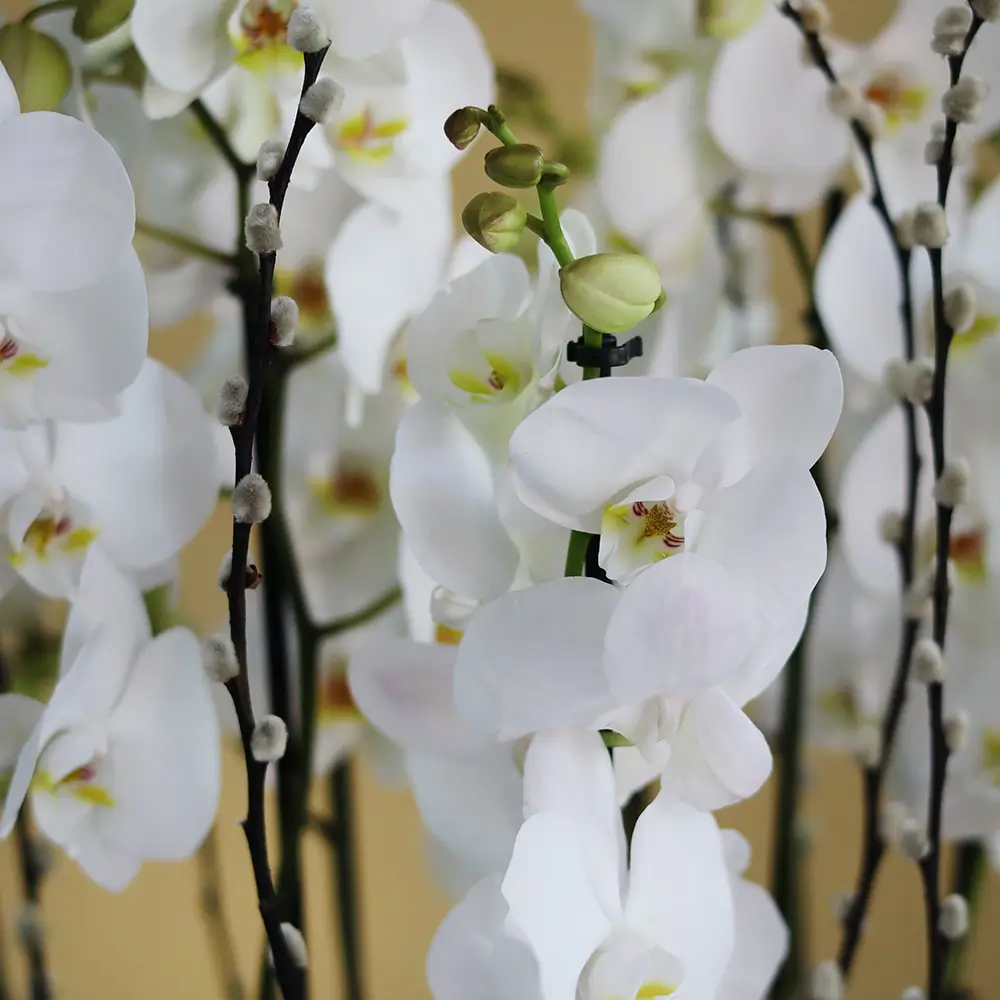 أوركيد بيضاء مذهلة في مزهريات فاخرة