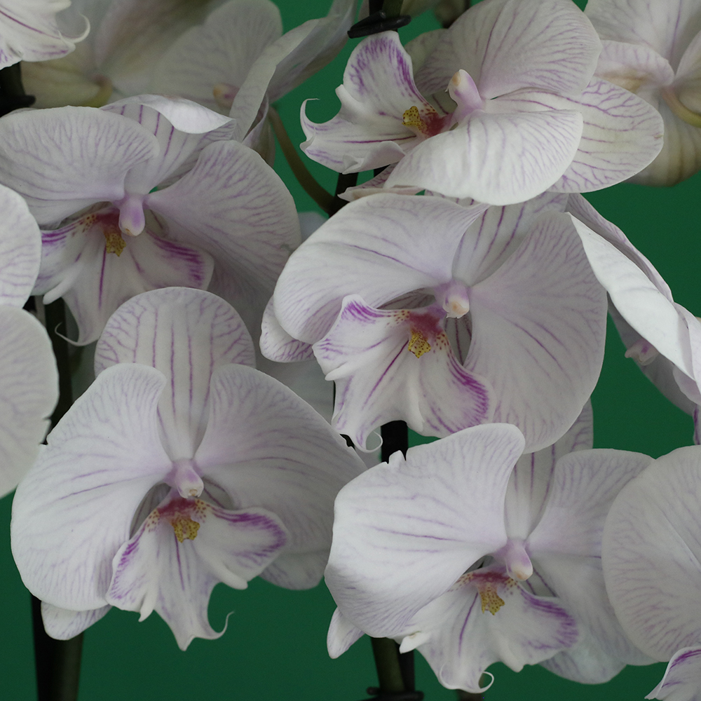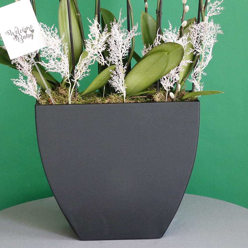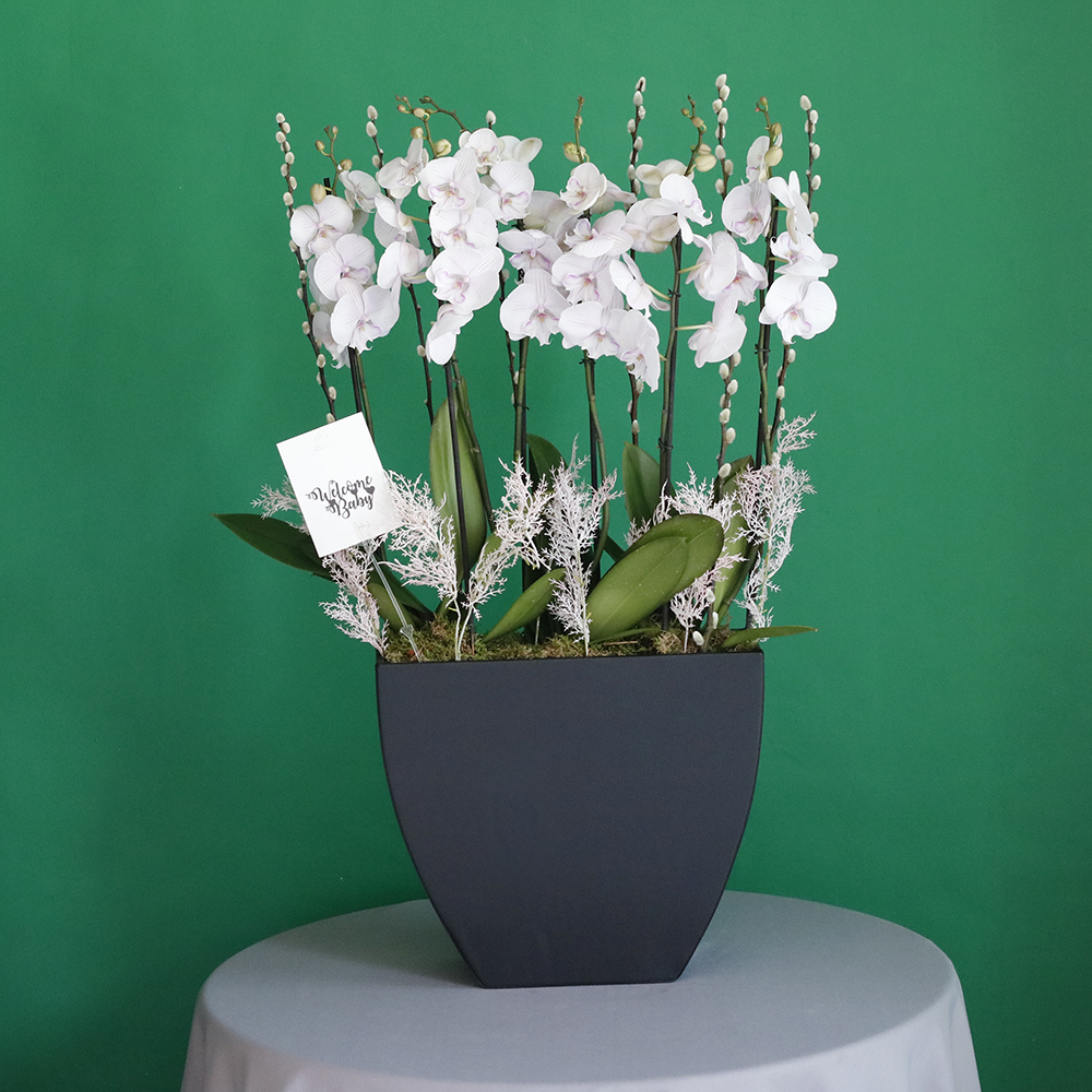 | أوركيد وردي لايت مذهل في مزهريات سوداء فاخرة |