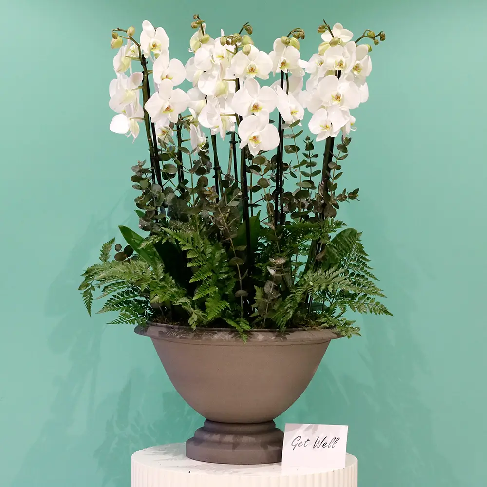 أوركيد بيضاء مذهلة في مزهريات فاخرة