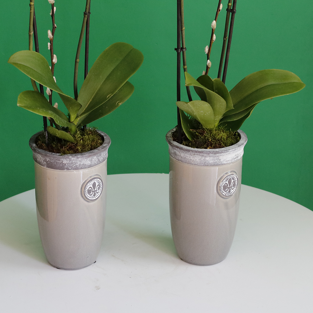 | Gorgeous twin Orchids Yellow Red in a luxury vases |