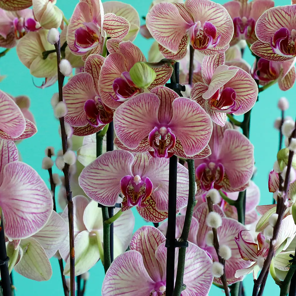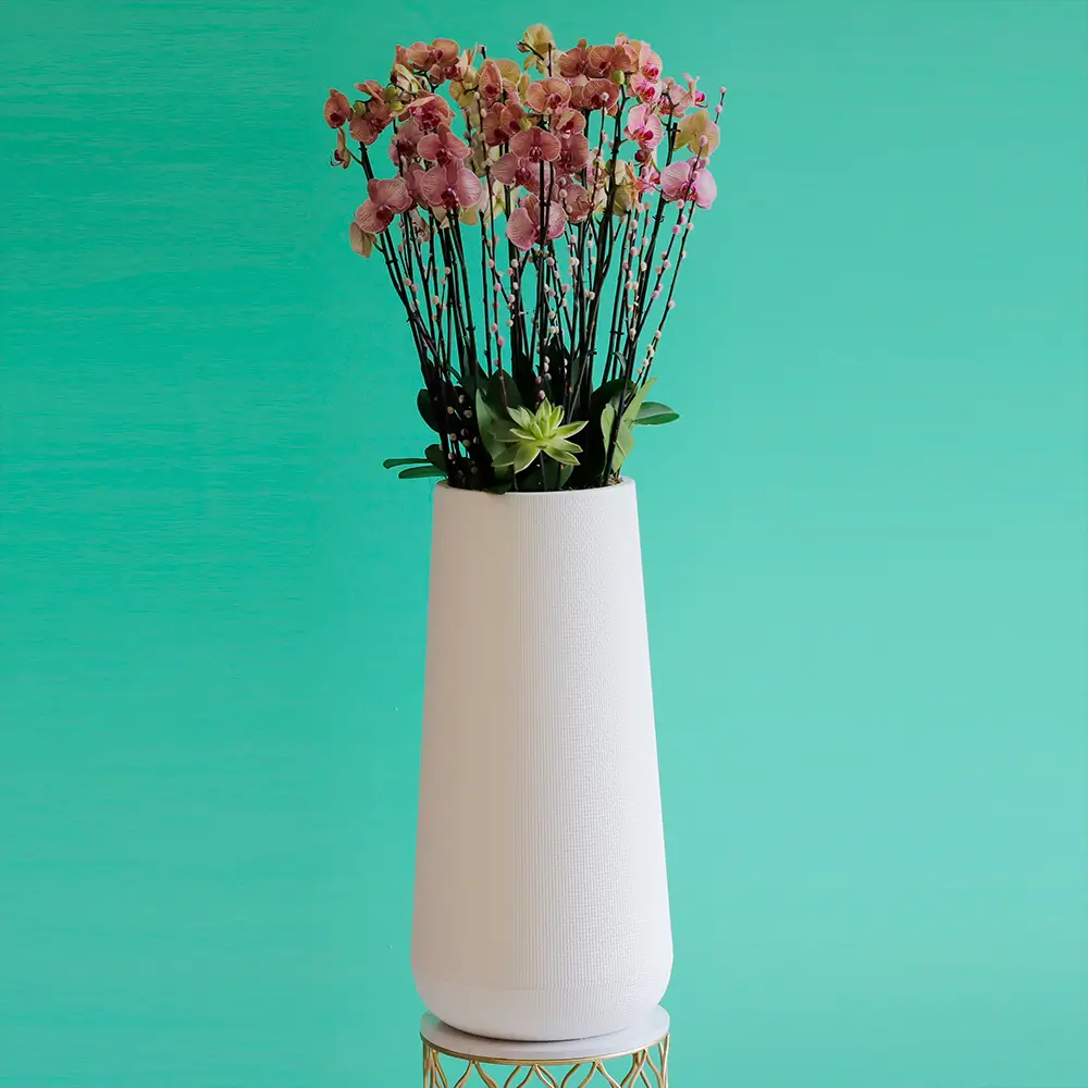 أوركيد الخوخ المذهل في مزهريات فاخرة
