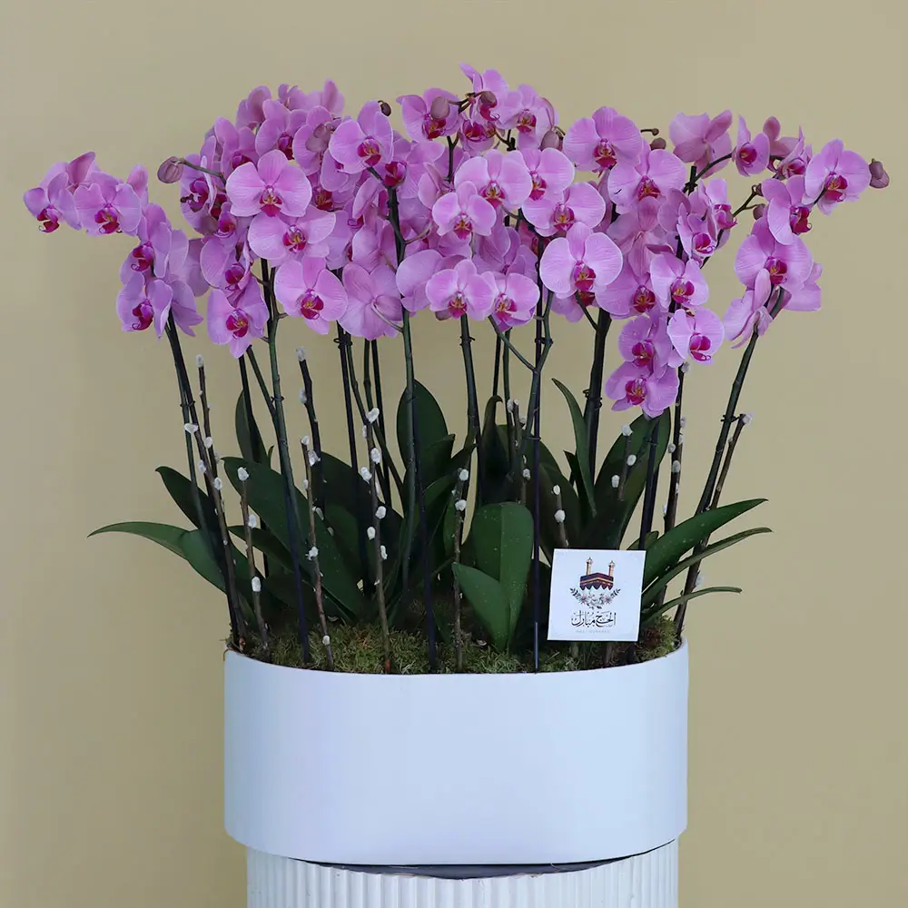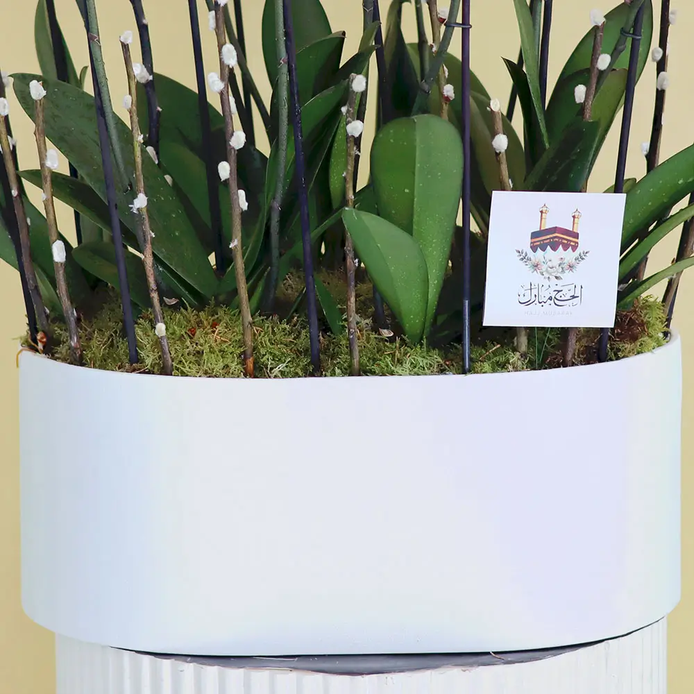 زهرة أوركيد بيضاء مذهلة في مزهرية فاخرة size : w90-h80 cm