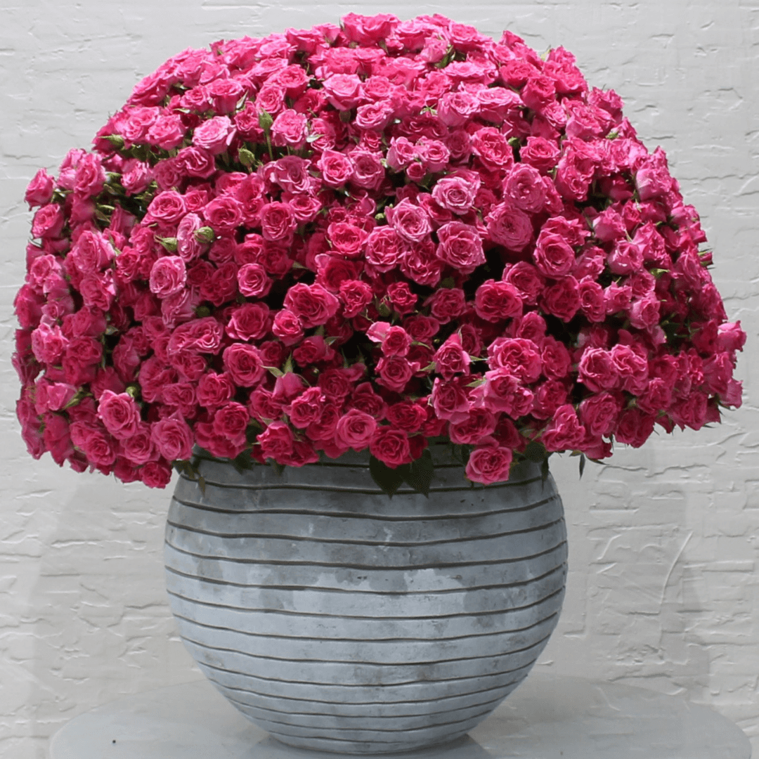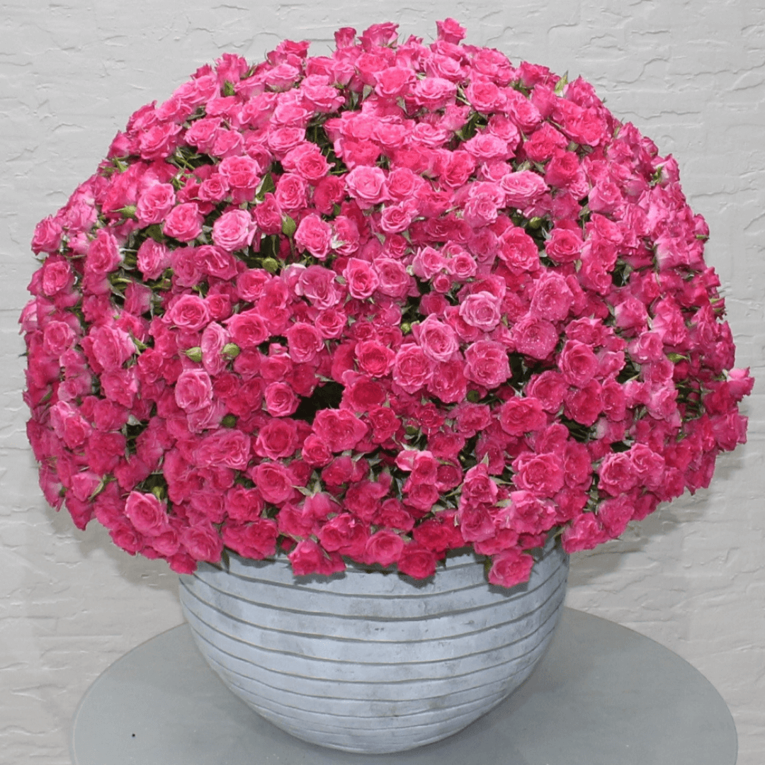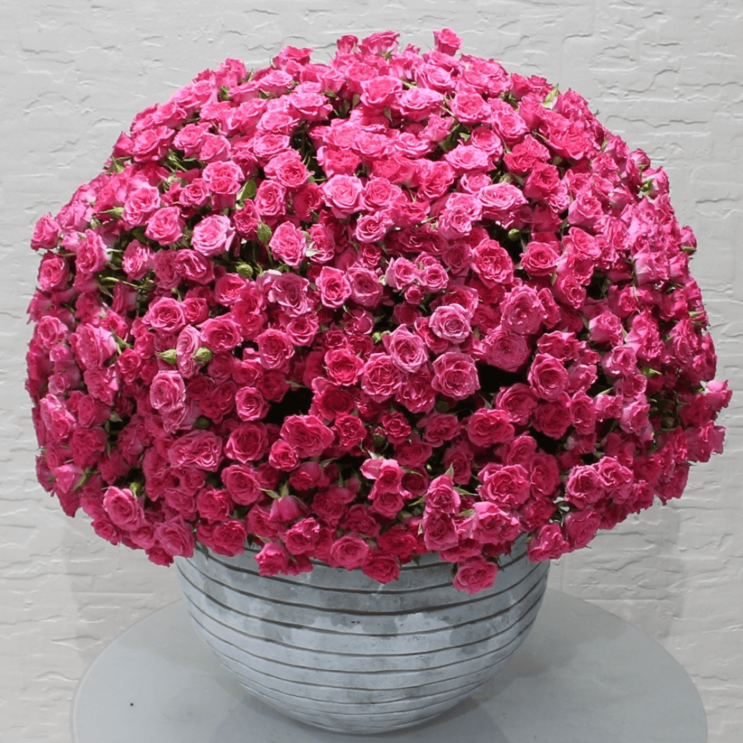 800 زهرة جميلة من الجوري الصغير الوردي في فازة مستديرة.