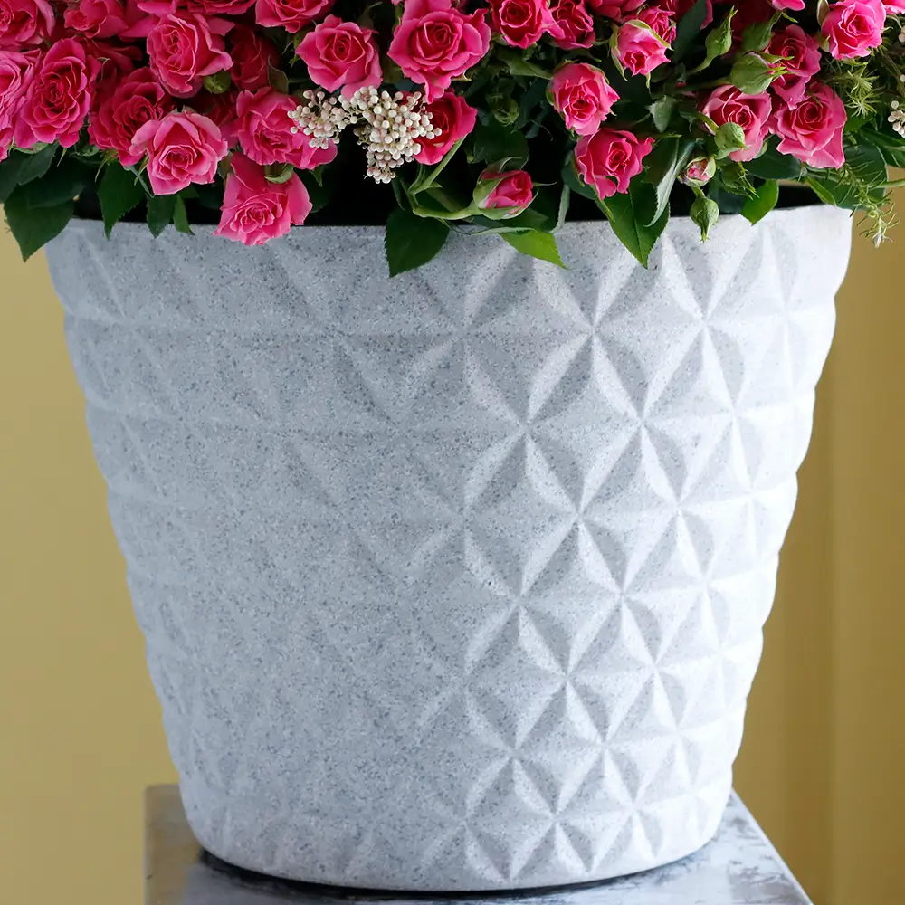 1000 زهرة جميلة من الجوري الصغير الوردي في فازة مستديرة.