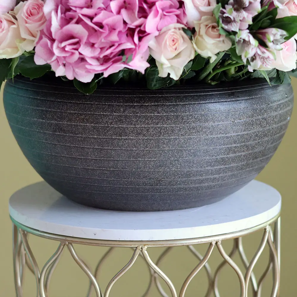تحتوي هذه الباقة على زهور الكوبية والفاوانيا والألستروميريا والورود الصغيرة في مزهريات مذهلة.