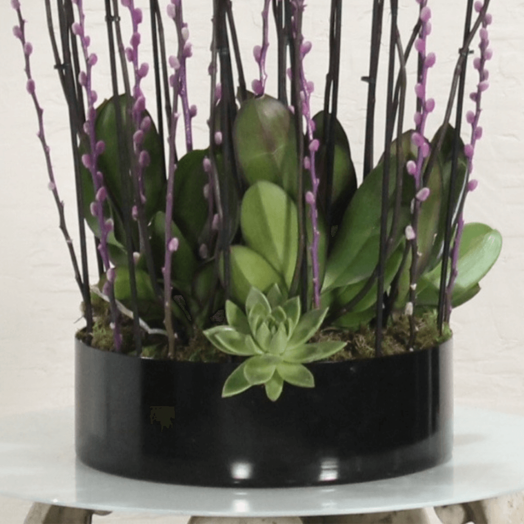 أوركيد أرجوانية مذهلة في مزهرية زجاجية مستديرة