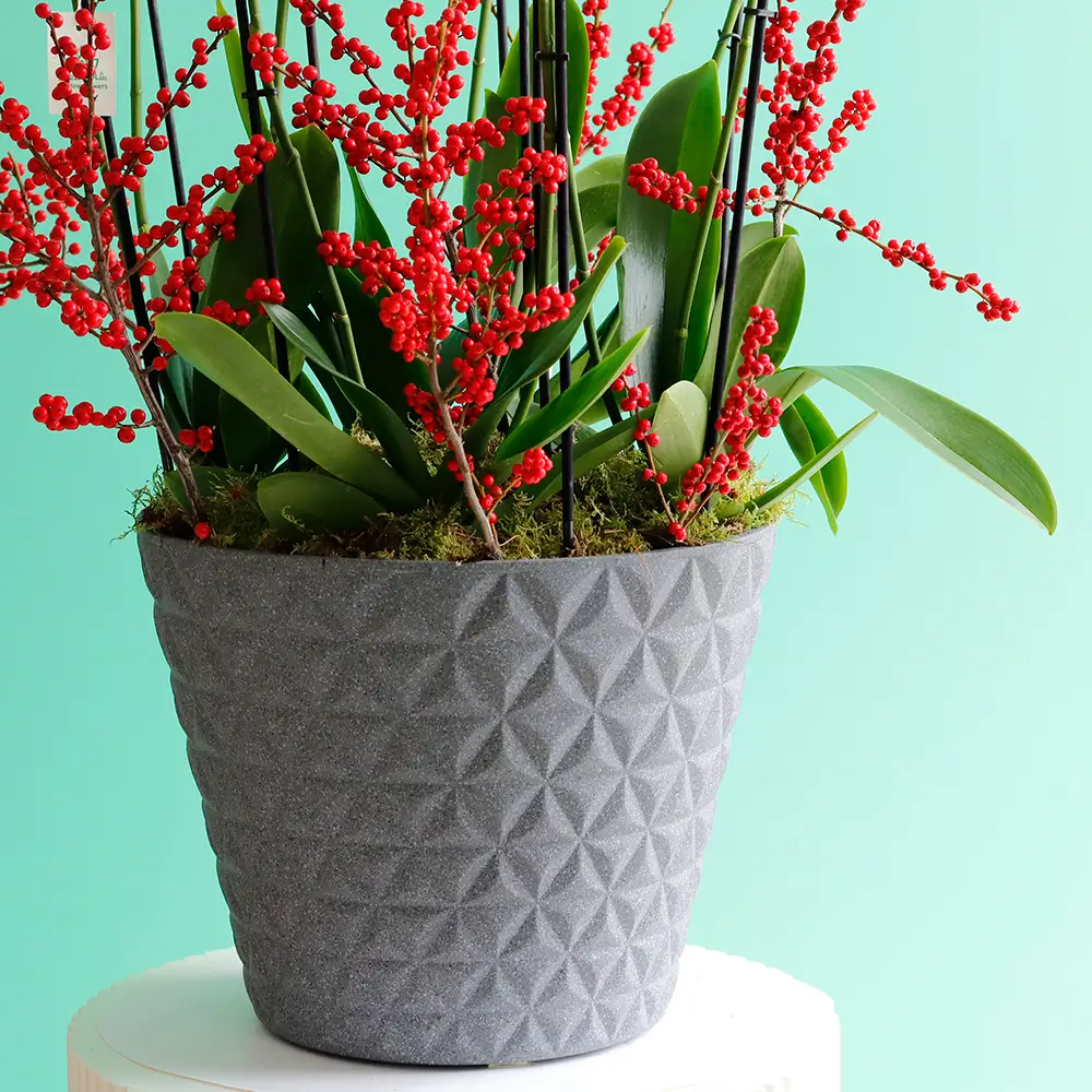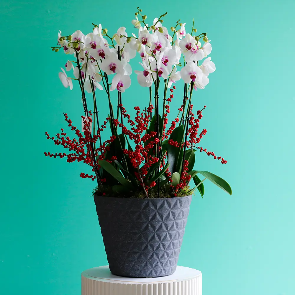 Amazing Red Lips Orchids with ilex in a Luxury Vases