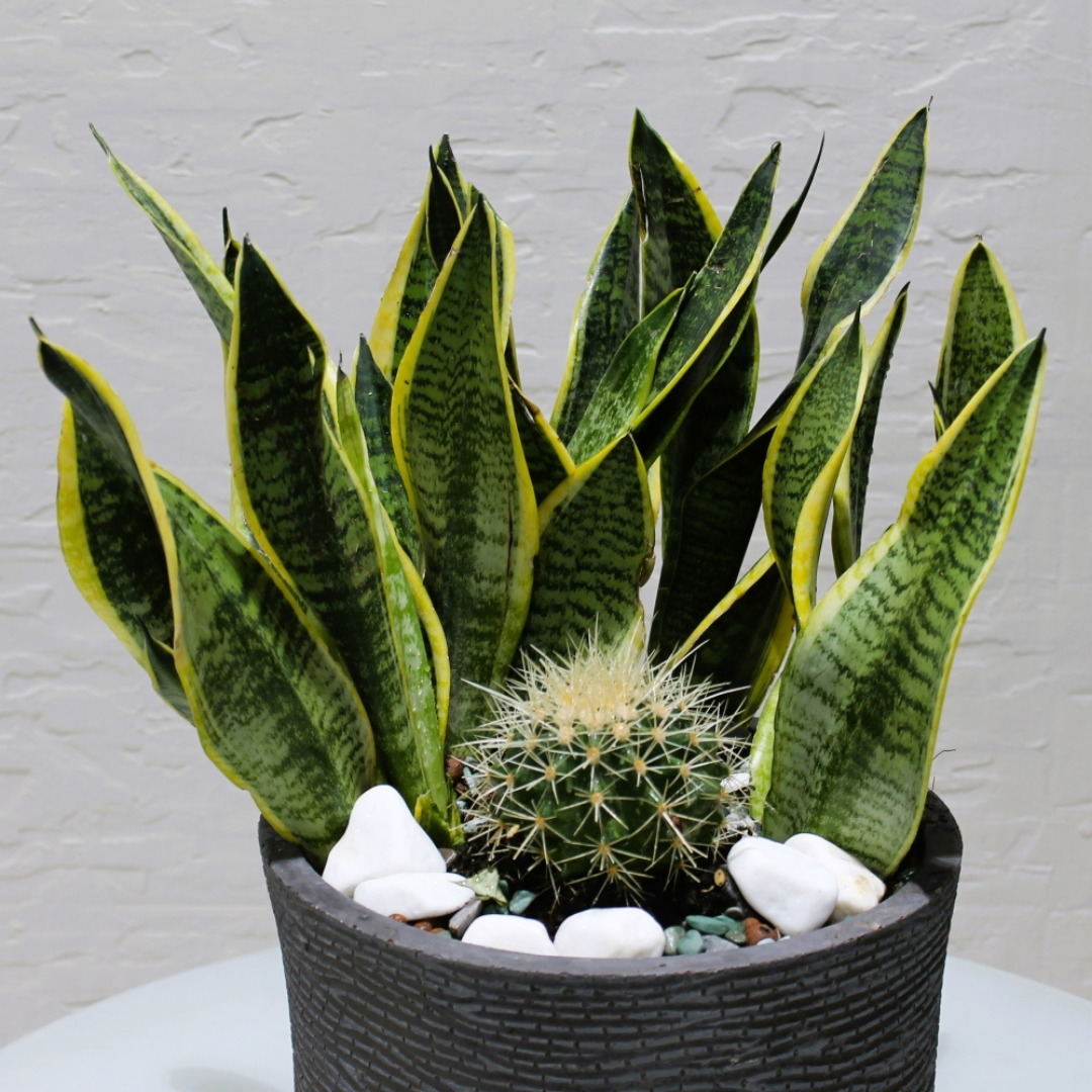Amazing sanseveria plants for fresh air arranged in a ceramic vase.