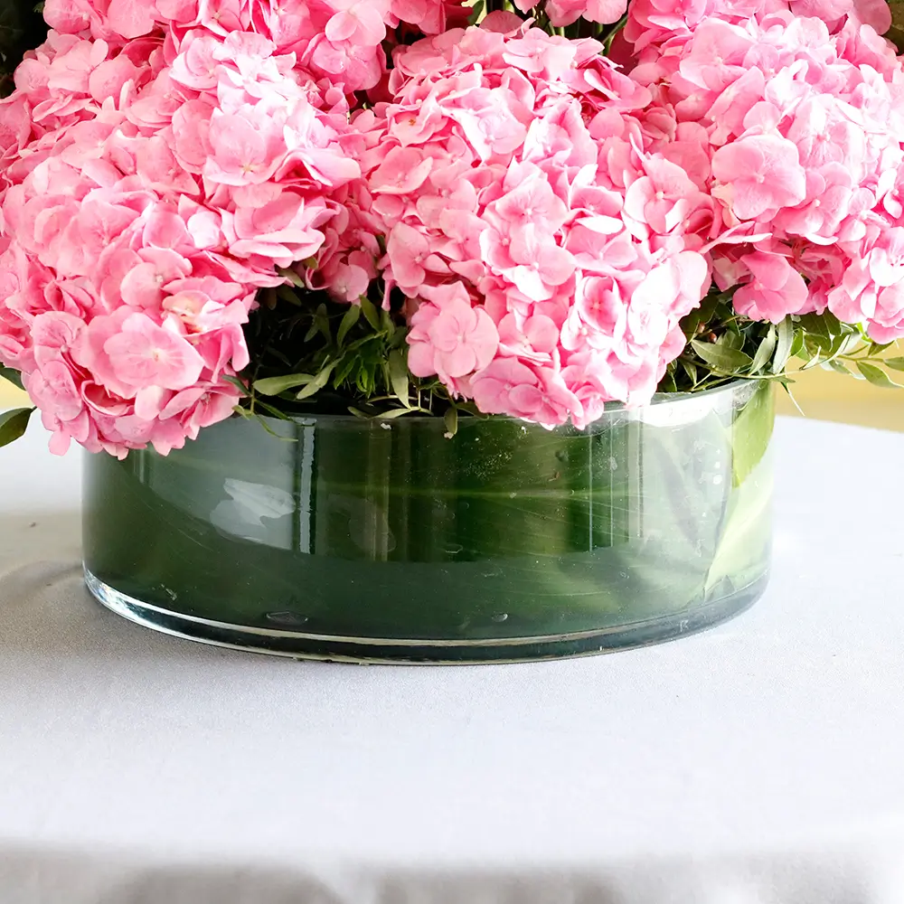 Beautiful Rose with Hydrangeas in a glass vase