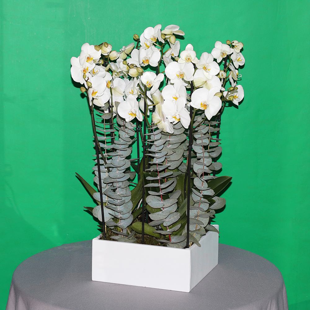 أوركيد بيضاء مذهلة في مزهريات فاخرة