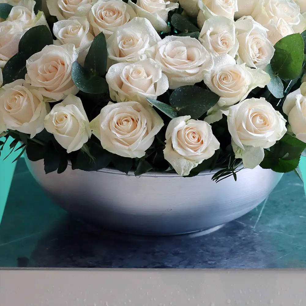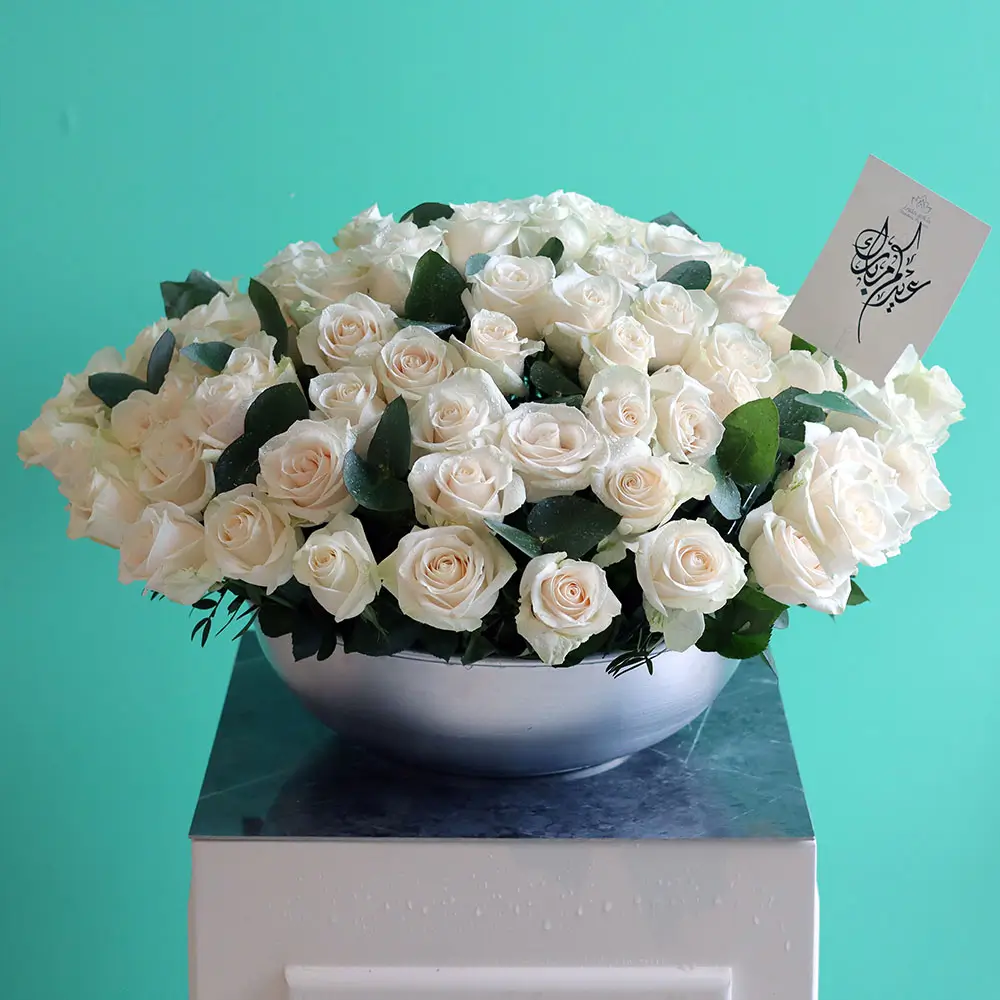 تحتوي هذه الباقة على الورد في مزهريات رائعة.