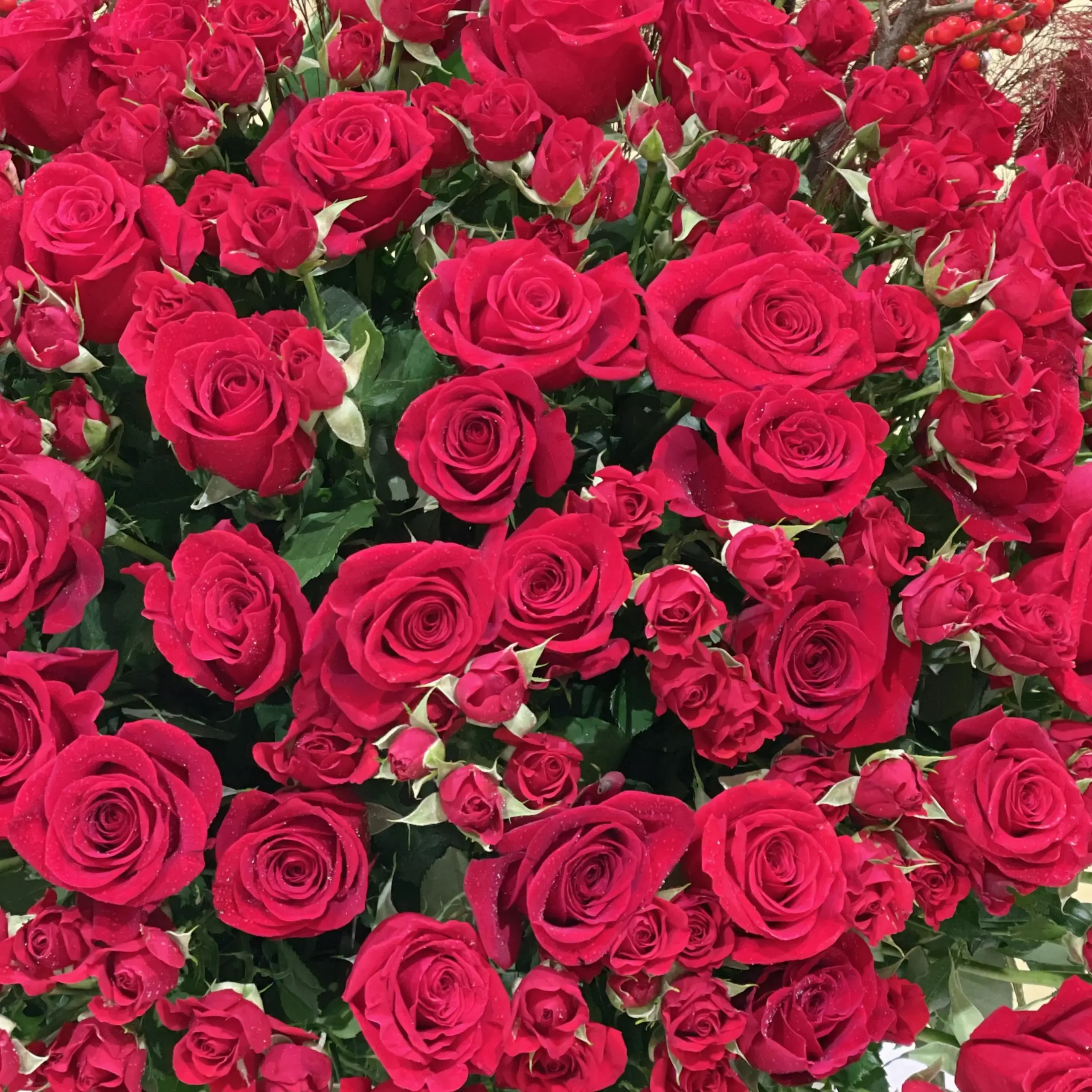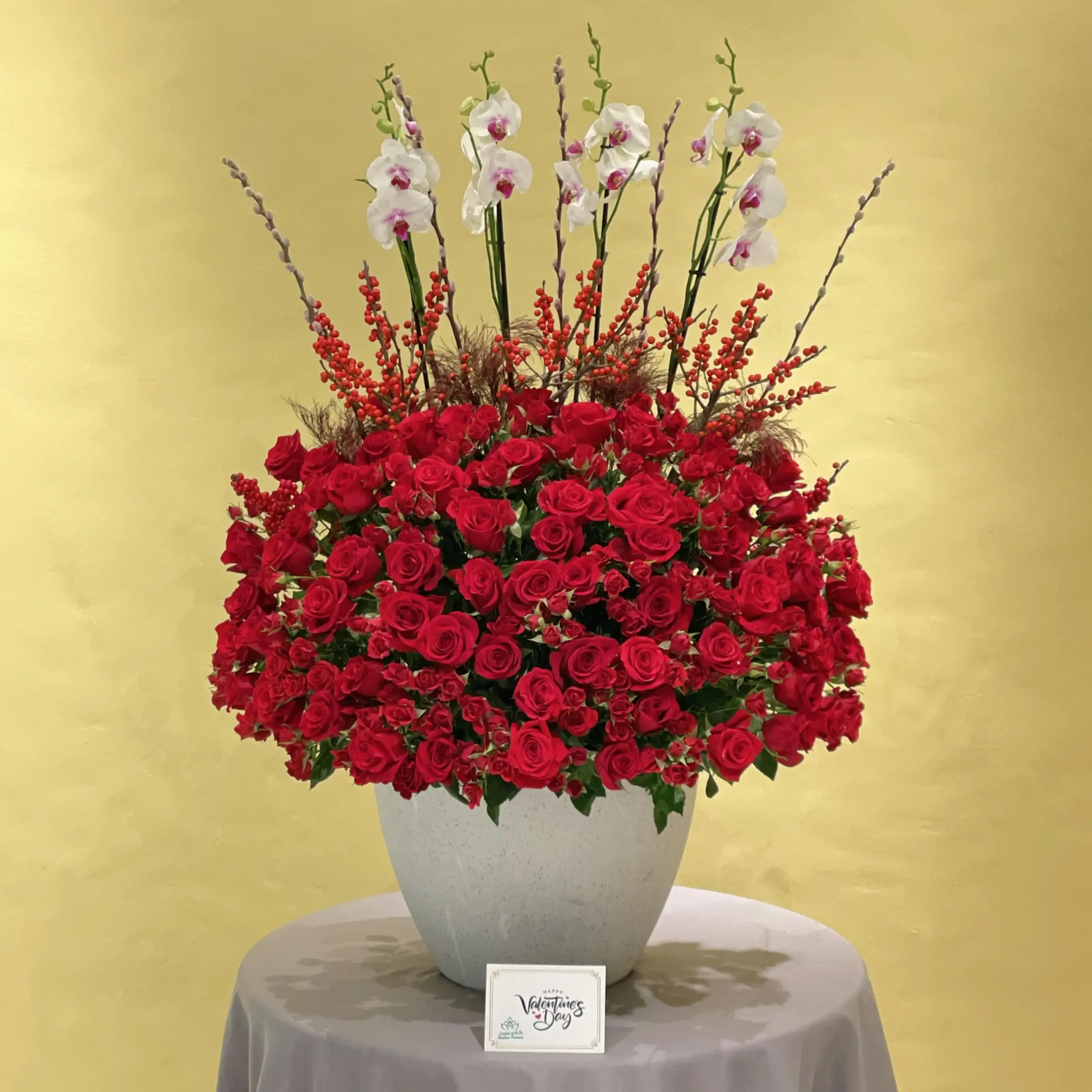 أوركيد مفاجئ مع ورود حمراء في مزهريات ممتازة