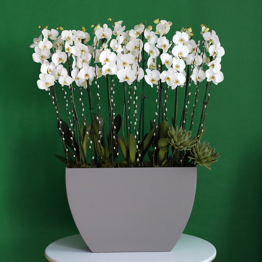 أوركيد بيضاء مذهلة في مزهرية ممتازة