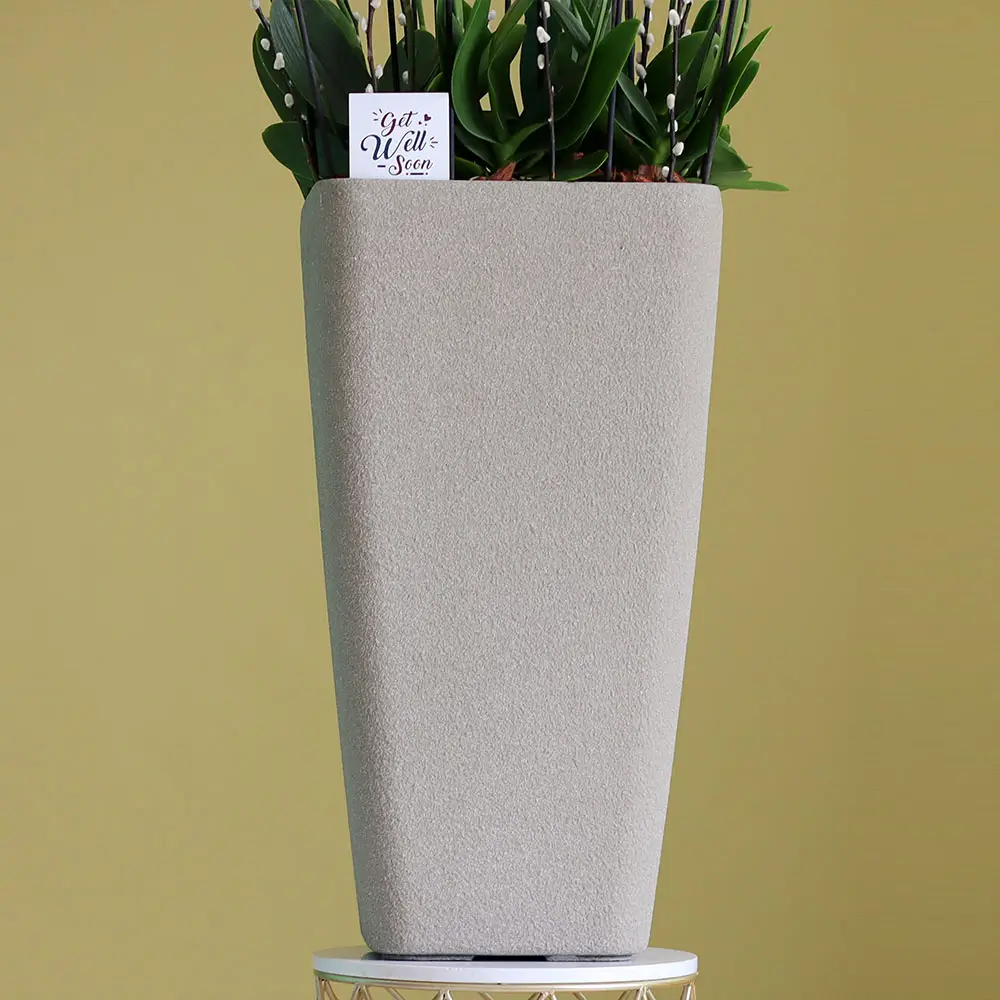 زهرة الأوركيد البيضاء المذهلة في مزهريات فاخرة