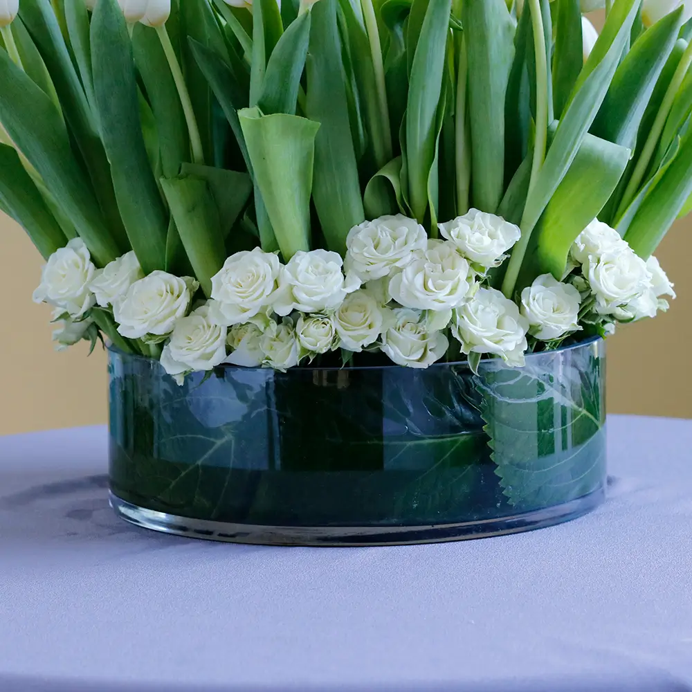 Gorgeous Tulip with baby roses arrangement in a excellent vase